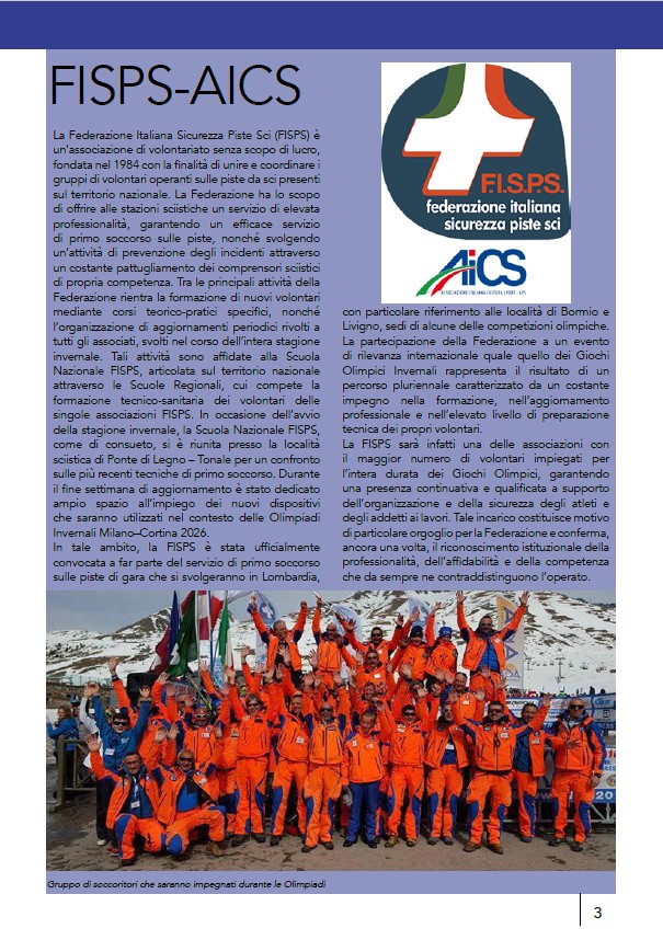 La rivista dell’associazione bellunese dedica un ampio spazio a FISPS Italia, approfondendo la missione dell’associazione e il suo ruolo centrale nella sicurezza e nel soccorso sulle piste da sci.