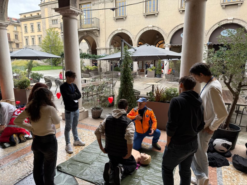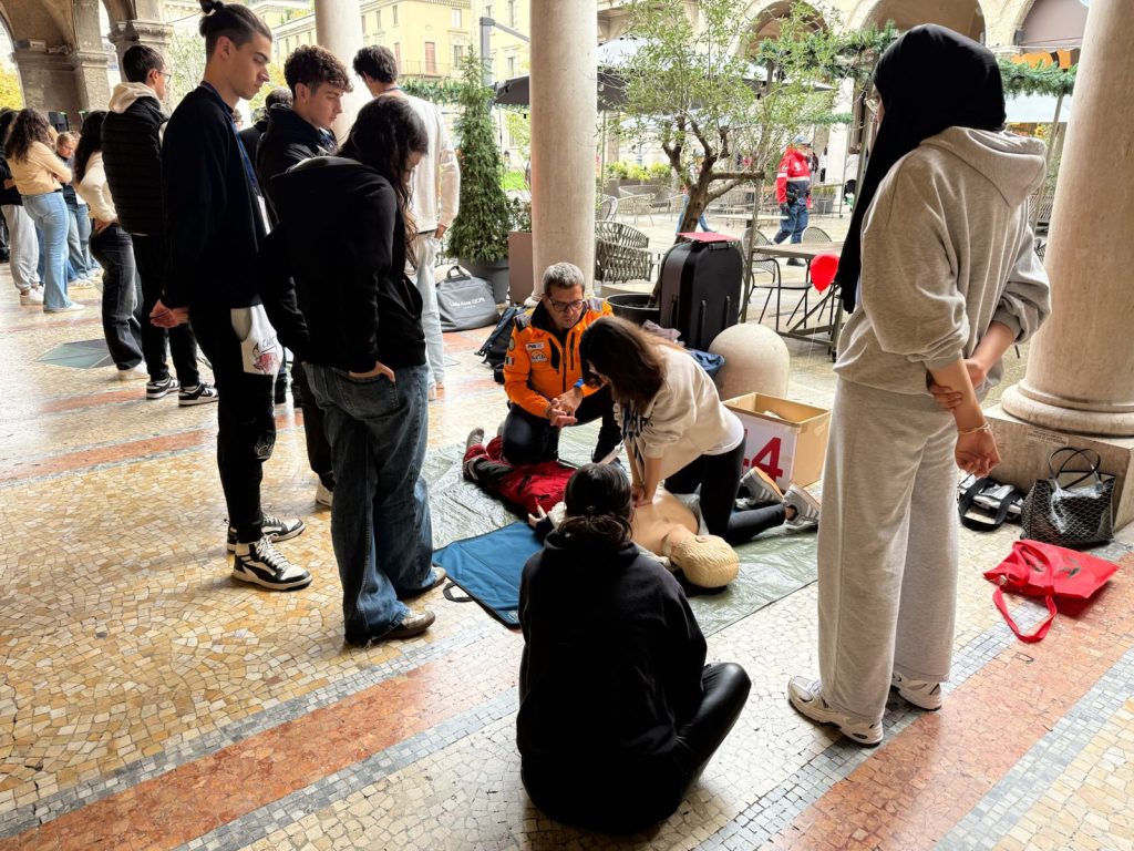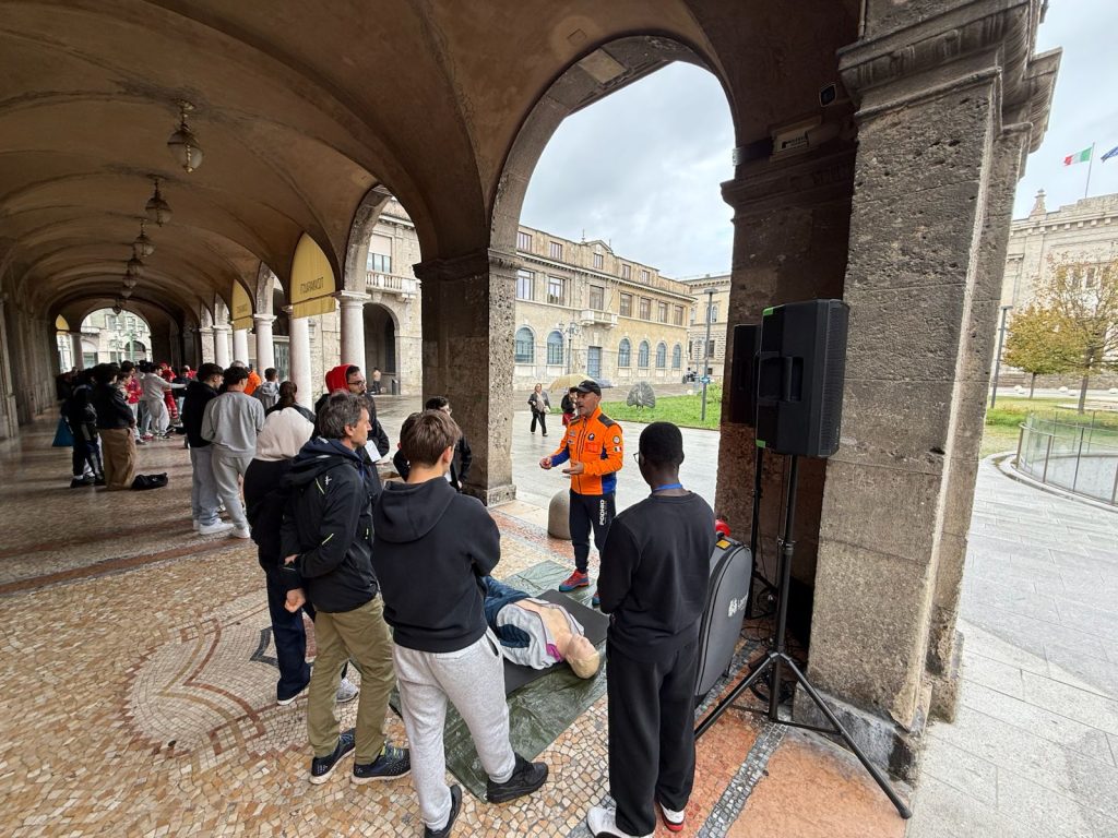 I ragazzi coinvolti, hanno iniziato la giornata alle 08.00 con la lezione teorica in aula, per poi proseguire lungo il Sentierone, dove sono state allestite le piazzole per la parte pratica. Ogni partecipante ha potuto sperimentare la tecnica e le procedure di rianimazione che, in molti casi, possono salvare una vita.